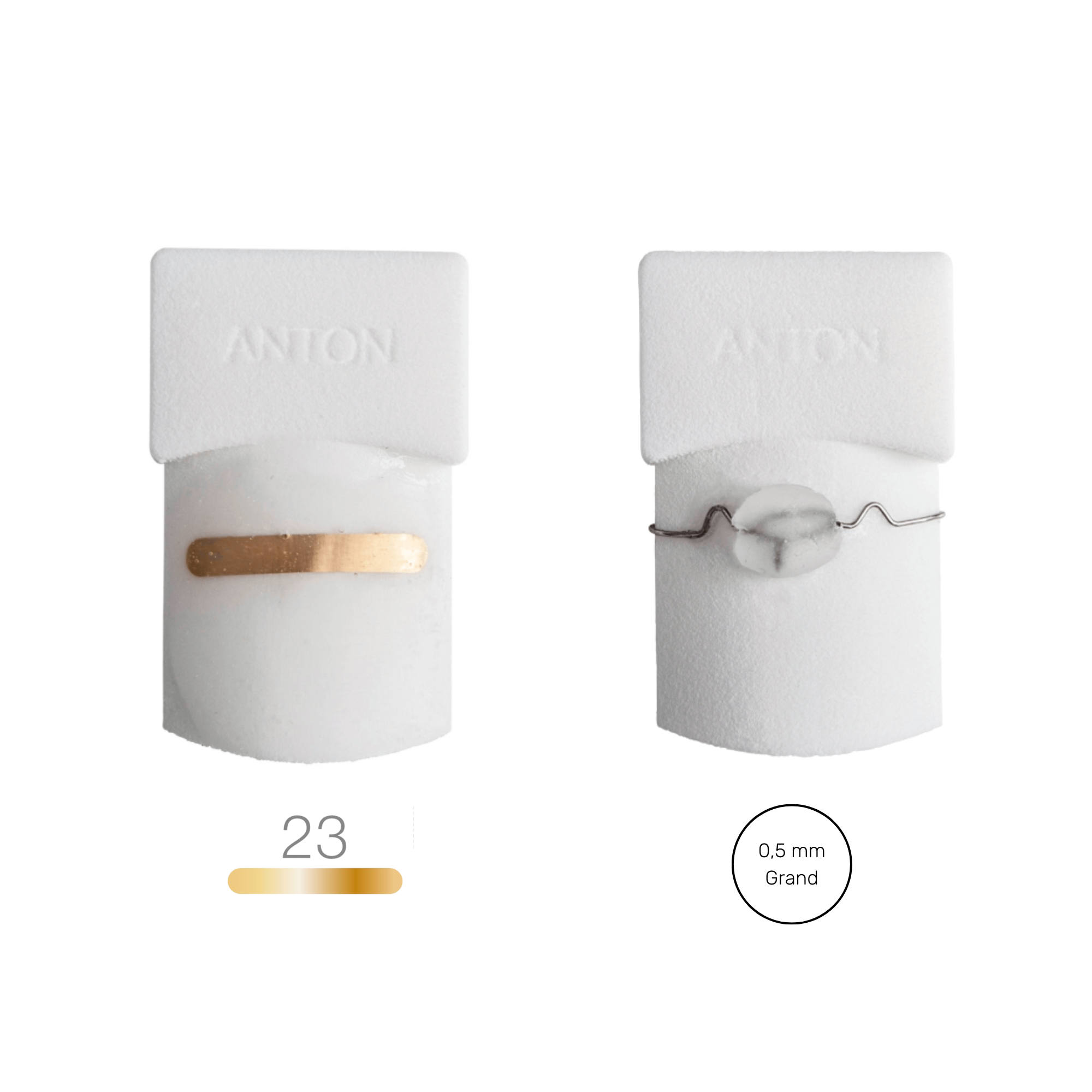 | Antón | Uña uniformemente engrosada y ancha. | Plano 23mm | Blanco 0,50 mm grande |