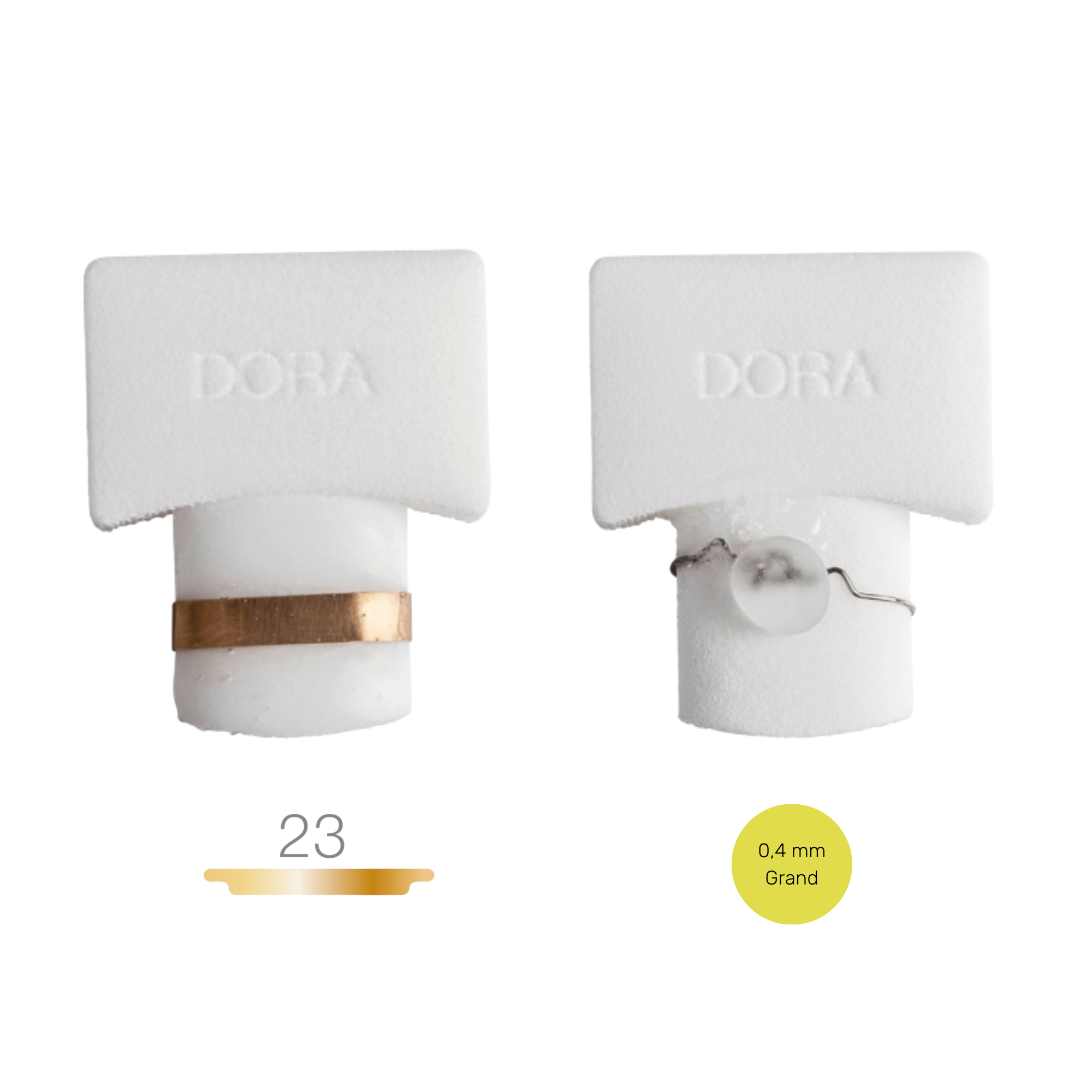 | dora | Uña engrosada y muy rizada | Gancho doble 23mm | Amarillo 0,40 mm grande |