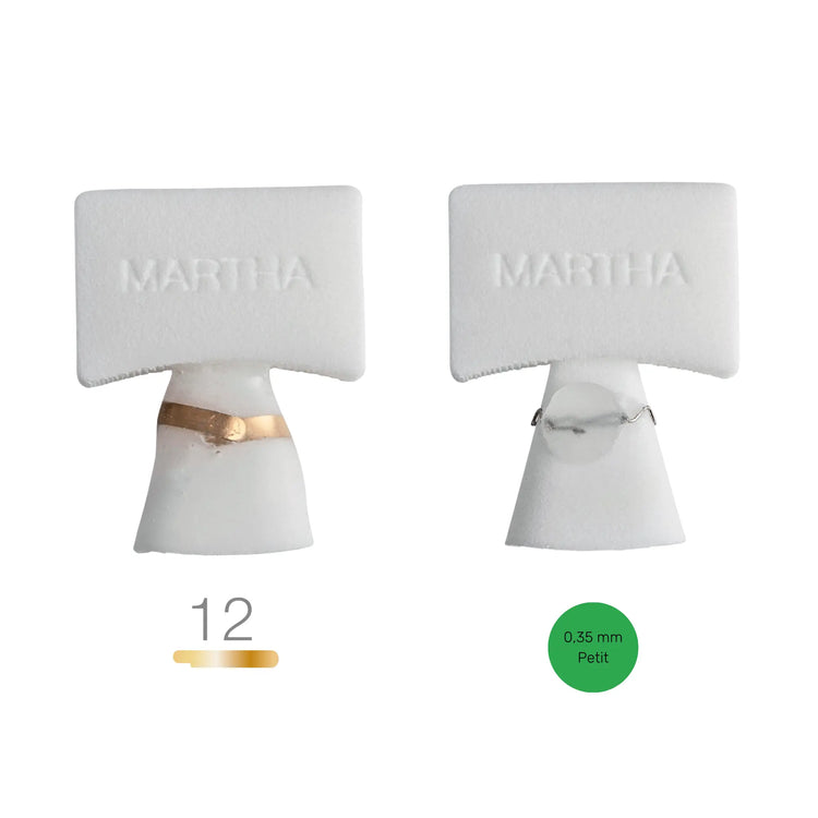 | marta | Uña que se ensancha mucho hacia el frente y queda ligeramente curvada. | Gancho sencillo 12mm | Verde 0,35 mm pequeño |